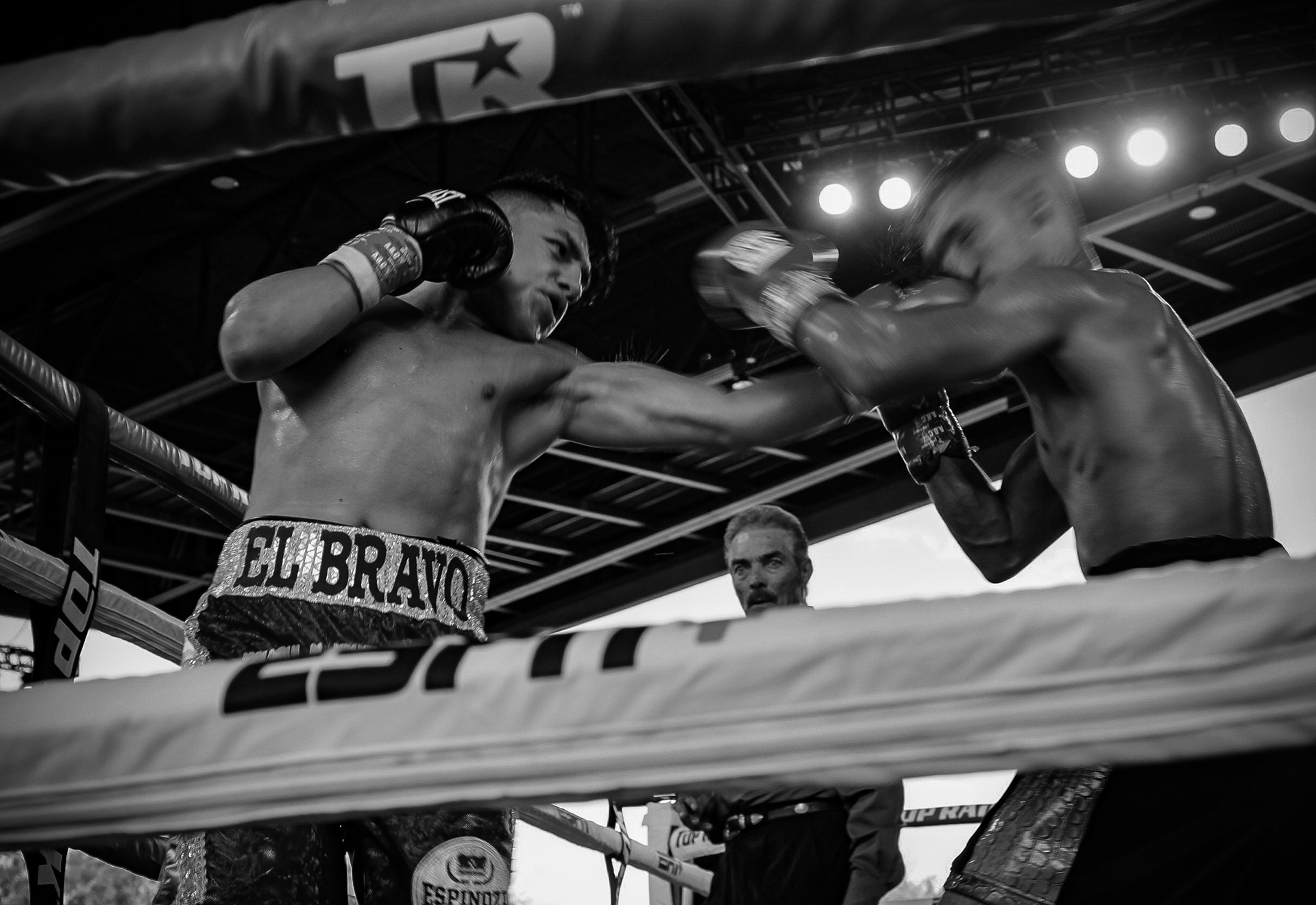 'El Bravo' finally connects with a firm left jab square to the jaw of Garza during the fight's later rounds.